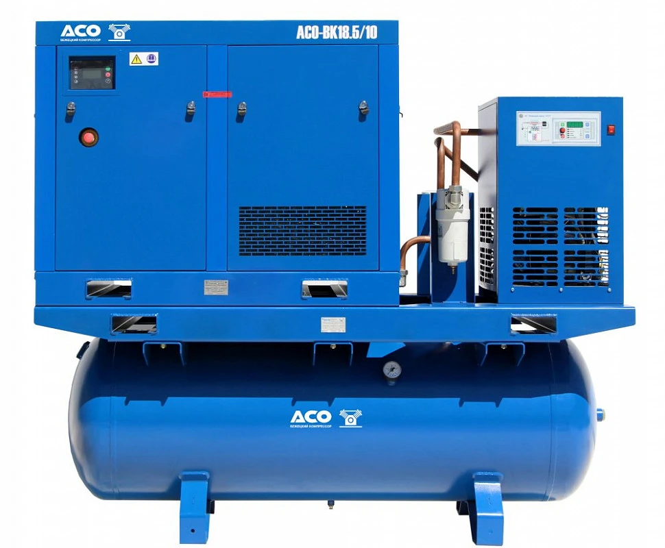 Винтовой компрессор АСО-ВК18,5/16М2.ОВ-500 оснащен осушителем рефрижераторного типа и встроенными линейными фильтрами, которые обеспечивают высокую степень очистки ресурса от масляной взвеси и механических примесей. В результате удаляются частицы размером 0,1 микрона, а концентрация масляной взвеси не превышает 0,01 мг в кубометре