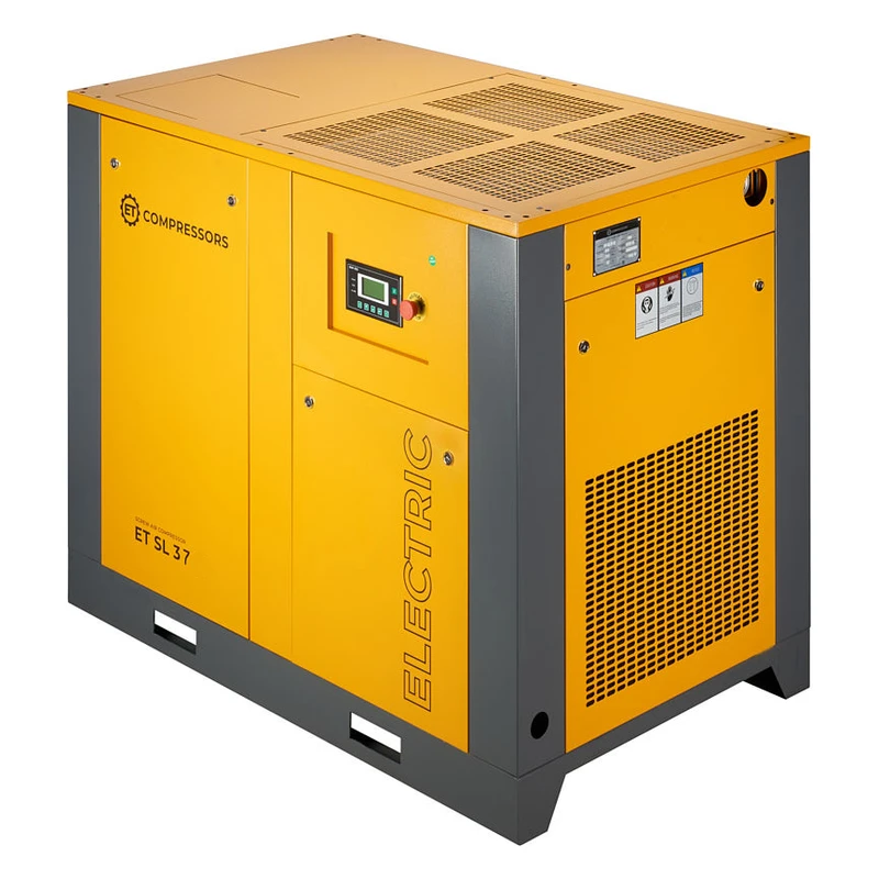 Низкий уровень шума также достигается применением шумопоглощающих панелей, установкой электродвигателя и винтового блока на виброопорах.